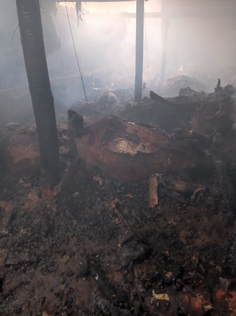 lçemiz Ünlüce/Meğelesor Mahallesinde İlhami Bingöl'e ait samanlık ahır ve odunluktan oluşan yapıda yangın çıktı.Yangında ahırda bulunan 21 adet büyükbaş hayvan telef olurken samanlık,ahır ve odunluk kullanılamaz hale geldi.Yangın Hınıs Belediye Başkanlığı ekiplerince söndürüldü.